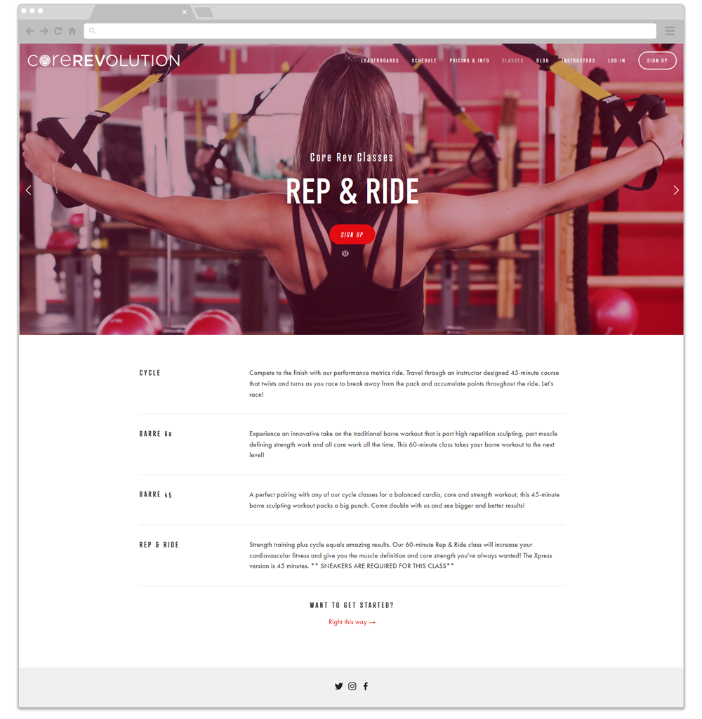 This re-design was for an awesome cycling studio based in Charlotte, NC. They were looking for a fresh look and wanted to lose the desaturated and drab look of their old site. We simplified their page structure, added custom banners, and used high-energy/colorful imagery to breathe life into their new design!